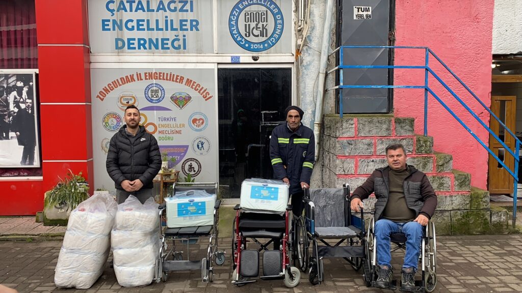 Zonguldak Belediyesinde 13 yıldır temizlik görevlisi olarak görev yapan Abdurrahman Yılmaz(56)hesabına yatan banka promosyon ücretiyle anlamlı bir işe imza attı. Yılmaz, Çalatalağzı Engelliler Derneği Başkanı Özcan Albas’a ulaşarak, bir engelli vatandaşa tekerlekli sandalye yardımı yapmak istediğini iletti. Ardından Başkan Albas’ın aileyi bulmasının ardından bugün temizlik görevlisi Yılmaz, 3 bin TL değerindeki tekerlekli sandalyeyi alarak Çatalağzı Engelliler Derneği Başkanı Özcan Albas’a teslim etti.