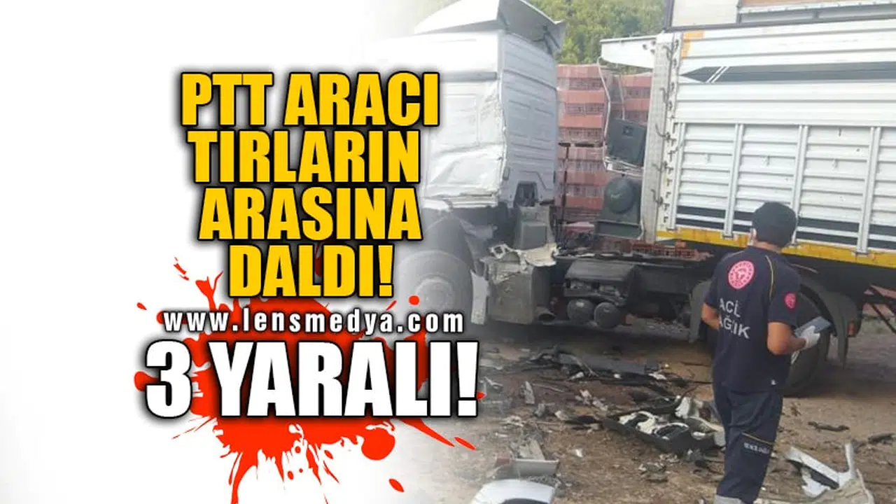 Zonguldak'ta virajı alamayan PTT'ye ait kargo aracı kontrolden çıkıp park halindeki üç tıra çarparak durabildi. Kazada üç kişi yaralandı.