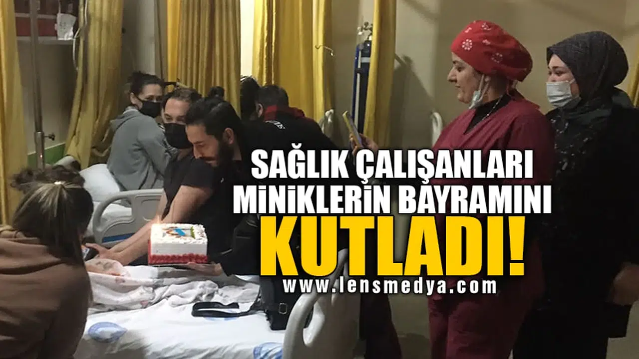 Zonguldak Kadın Doğum ve Çocuk Hastanesinde çalışan sağlık çalışanları, hastanede yatan miniklerin 23 Nisan Ulusal Egemenlik ve Çocuk Bayramını kutladı.