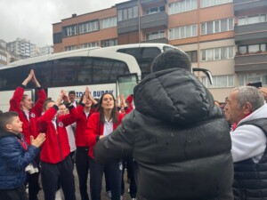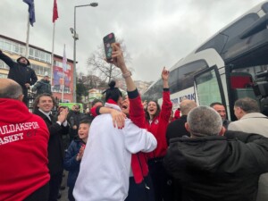 Zonguldak Spor Basket 67 kafilesi Site Kapalı Spor Salonu’na ulaştı. Türkiye Kadınlar Basketbol Birinci Ligi (TKBL)’de şampiyonluğunu ilan eden Zonguldak Spor Basket 67, bugün saat 11:00’da Zonguldak Site Kapalı Spor Salonu’na ulaştı. Taraftarlar, şampiyon olarak ING Kadınlar Basketbol Süper Ligi’ne yükselen Kırmızı Lacivertlileri büyük coşkuyla karşıladı. İzmir’den kente dönüş yapan Zonguldak Spor Basket 67 heyeti ve taraftarlar şampiyonluk sevincini paylaştı.