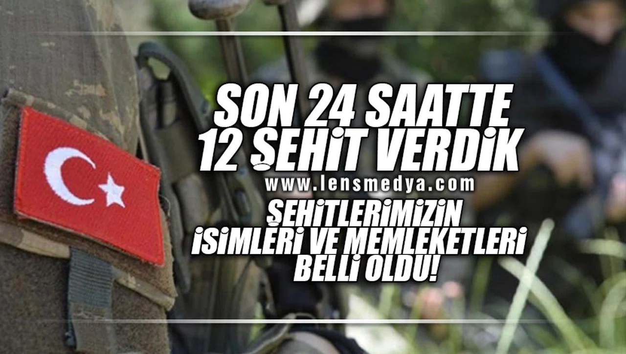 ŞEHİT OLAN ASKERLERİMİZİN MEMLEKETLERİ VE İSİMLERİ BELLİ OLDU! Dün akşam Irak’ın kuzeyinden gelen 6 şehit haberinin ardından Milli Savunma Bakanlığı 6 şehidimizin daha olduğunu duyurdu. Şehit sayısı 12’ye yükselirken şehitlerin isimleri ve memleketleri de belli oldu. 23 Aralık 2023 tarihinde Pençe-Kilit Harekatı bölgesinde askeri üs bölgesine sızmaya çalışan teröristlerle çıkan çatışmada 6 askerimiz şehit olurken şehit olan askerlerimizin isimleri ve memleketleri belli oldu. P.Uzm.Çvş. Abdülkadir İYEM-Şanlıurfa P.Uzm.Çvş. Ahmet ARSLAN-Yozgat P.Söz.Er Cebrail DÜNDAR-Mardin P.Söz.Er Semih YILMAZ-Kırıkkale P.Söz.Er Kemal ASLAN-Elazığ P.Söz.Er Enes BUDAK-Ağrı