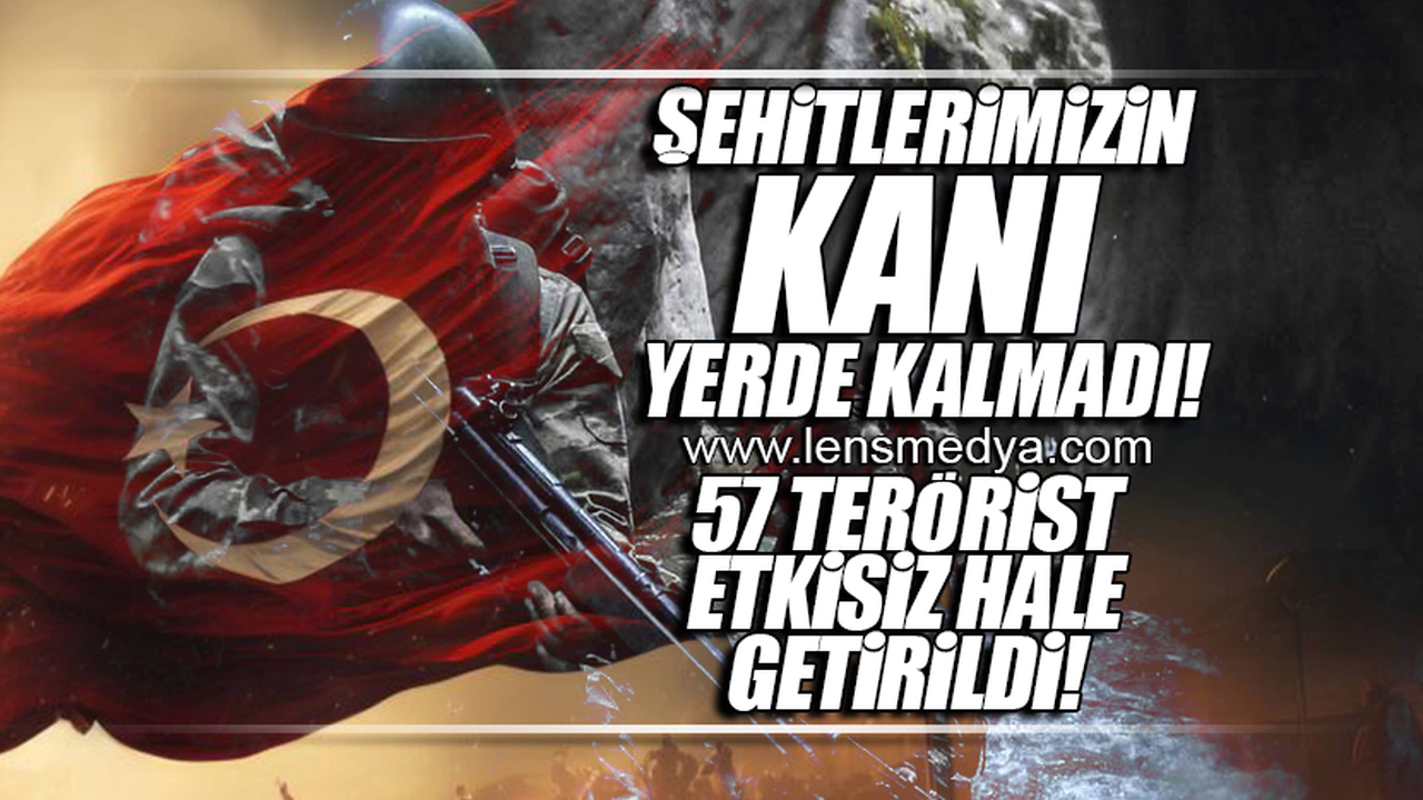 Milli Savunma Bakanlığı (MSB) son 24 saatte etkisiz hale getirilen terörist sayısının 57’ye yükseldiğini açıkladı. Milli Savunma Bakanlığından yapılan açıklamada, “Şehitlerimizin kanı yerde kalmadı, kalmayacak. Kahraman Mehmetçik en zorlu arazide PKK’lı teröristlere hain saldırının bedelini ödetmeye devam ediyor. Son 24 saatte etkisiz hale getirilen terörist sayısı 57’ye yükseldi. Operasyonlarımız kararlılıkla devam ediyor” ifadelerine yer verildi.