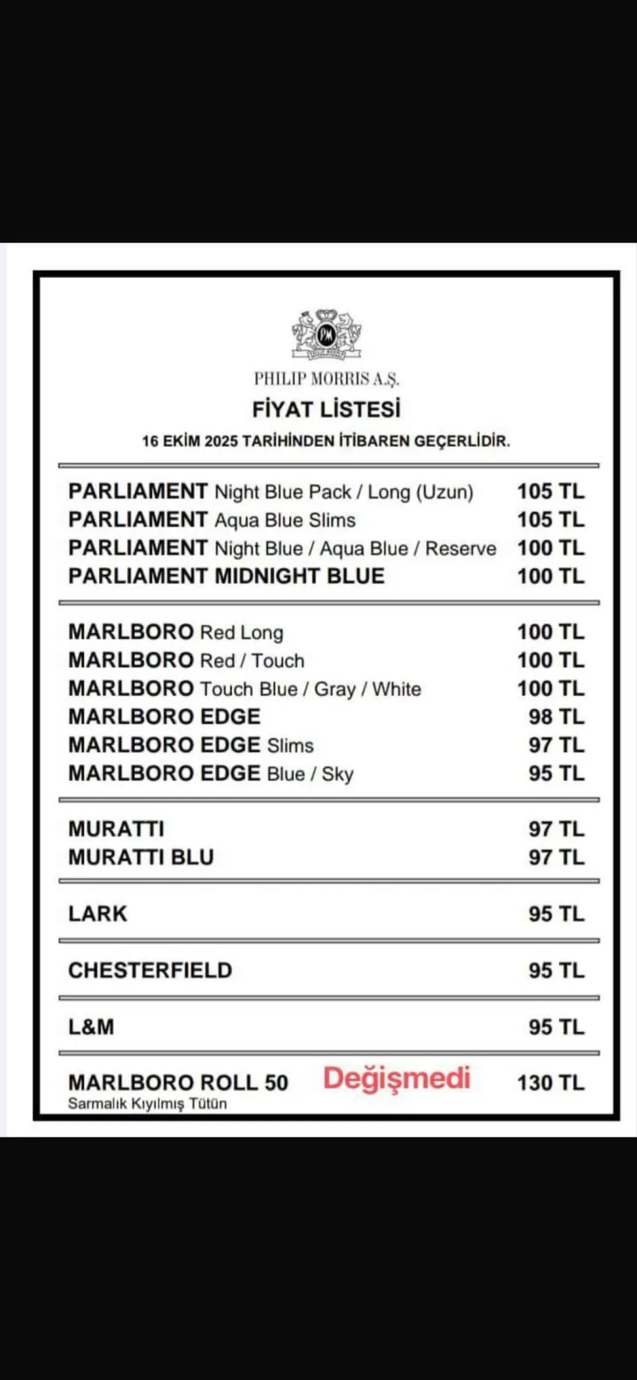 Sosyal medyada paylaşılan son zamlı sigara fiyat listesine göre, bünyesinde birçok sigara markasını barındıran Philip Morris grubunun fiyatlarında artış yaşandı.