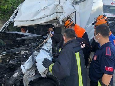 Edinilen bilgilere göre Zonguldak Ankara karayolu üzerinde bulunan Karaman beldesi yakınlarında bir minibüs tomruk taşıyan bir kamyona arkadan süratli bir şekilde çarptı.
