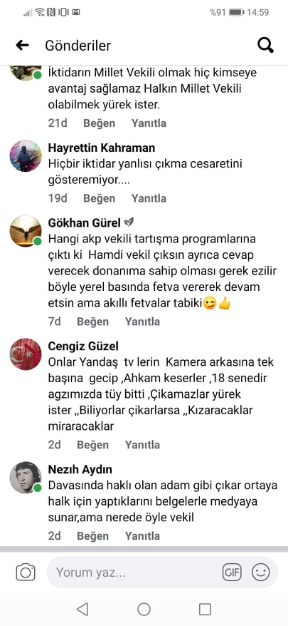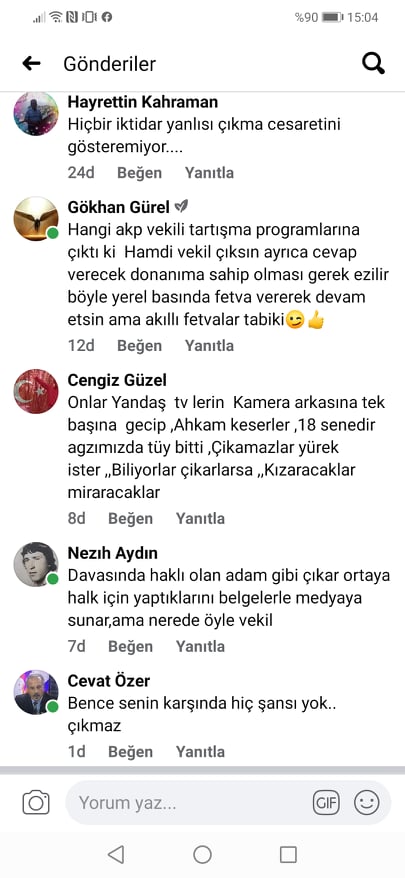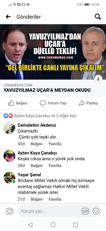 Lens Medya Haber’in yayımlamış olduğu haber paylaşımlarına yorum yaparak değerlendirmede bulunan ve tepkilerini dile getiren vatandaşların sayısı her geçen dakika artmaya devam ederken Hamdi Uçar’ın canlı yayına çıkmayacağını çok tepki alacağını yada cesaretinin olmadığını ifade ettiler.