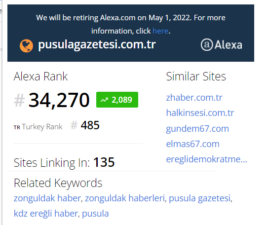 Zonguldak’ta bel altı ve şantaj kokan yazıları ile ünlü Pusula Gazetesi’nin sahibi Ali Rıza Tığ kendi gazetesi ile ilgili sık sık bu verileri yayınlayarak en çok tıklandığını iddia ederken Yeni Adım Gazetesi Pusula Gazetesi’nin Alexa oyununu adeta bozdu!