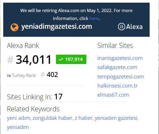 İnternet sitelerinin reytinglerini gösteren verileri veren Alaxa verilerinde rakam küçüldükçe sıralama artarken Zonguldak’ta faaliyet gösteren Yeni Adım Gazetesi bir gecede dünya sıralamasında 216.218’inci sıradan 50.715’inci sıraya çıkmış ve Alexa verilerindeki bu hızlı yükseliş Alexa verilerinin güvenirliliğini sorgulatmıştı.