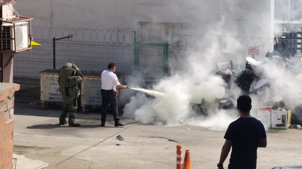 Öte yandan paketin patlatılmasıyla birlikte yerde ufak çaplı yangın çıktı. Polis ekipleri ve civardaki alışveriş merkezinde çalışan güvenlik ekipleri, yangın söndürme tüpleriyle müdahale ederek yangını söndürdü.