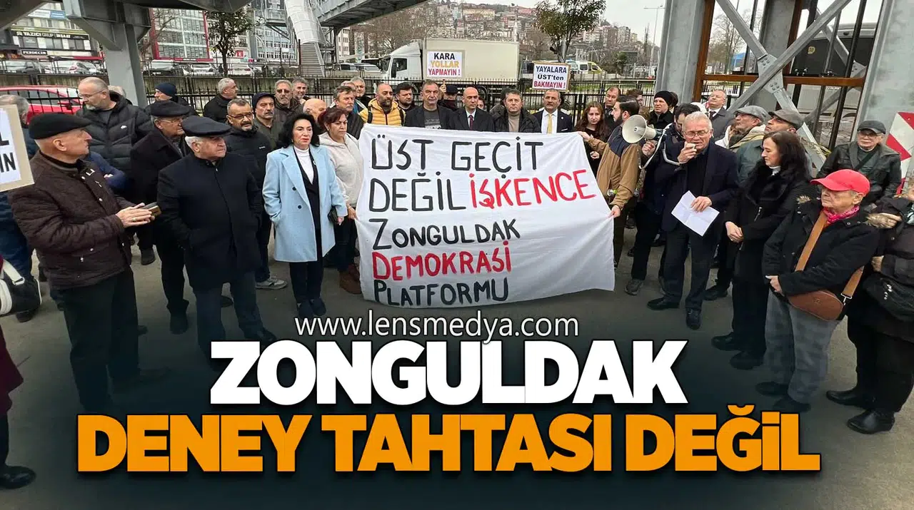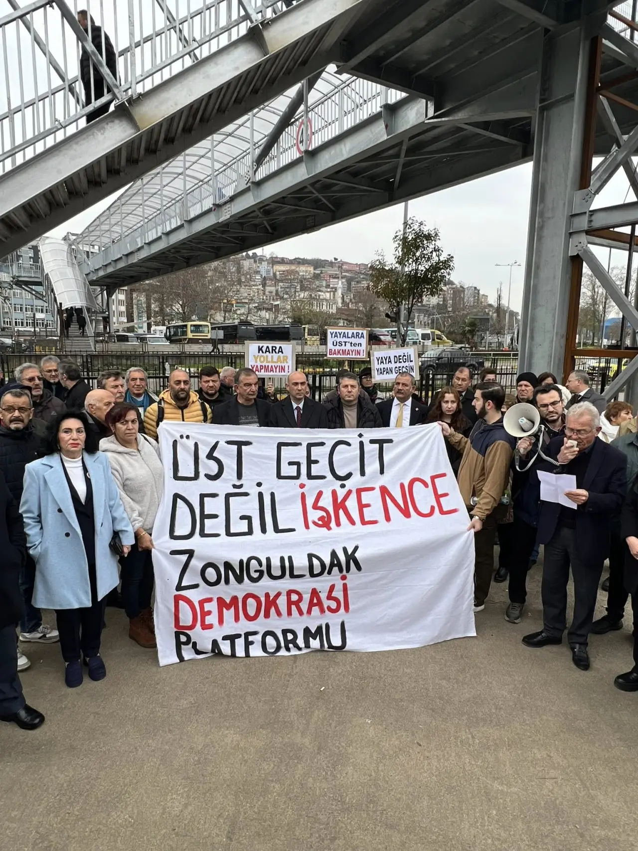 Zonguldak’ta kent merkezine inşa edilen ve kamuoyunda yoğun tartışmalara neden olan yeni üst geçit, Demokrasi Platformu’nun tepkisine sahne oldu. Üst geçit önünde bir araya gelen platform üyeleri, “Üst geçit değil işkence, yaya değil yapan geçsin” yazılı pankart açarak uygulamayı protesto etti.