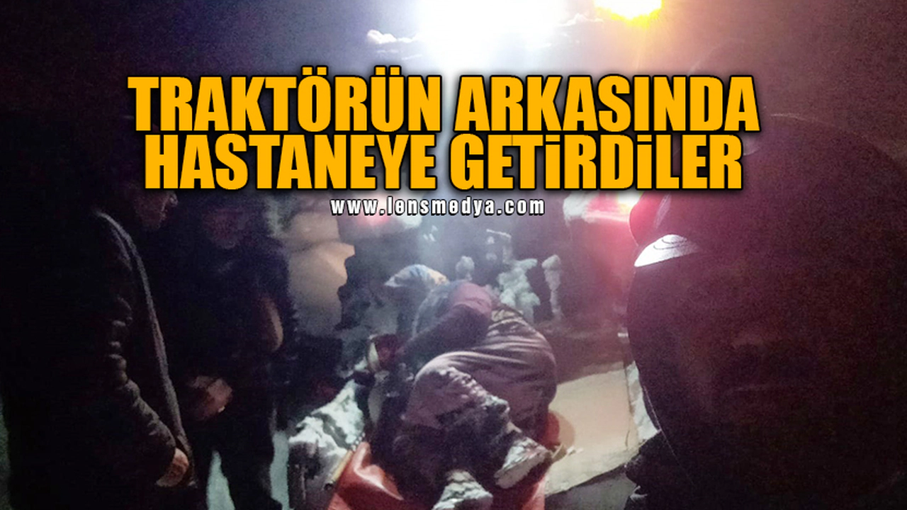 Zonguldak’ta yolu karla kapanan köyde bir hasta, traktörün arkasına yapılan mekanizmayla ambulansa kadar taşındı.