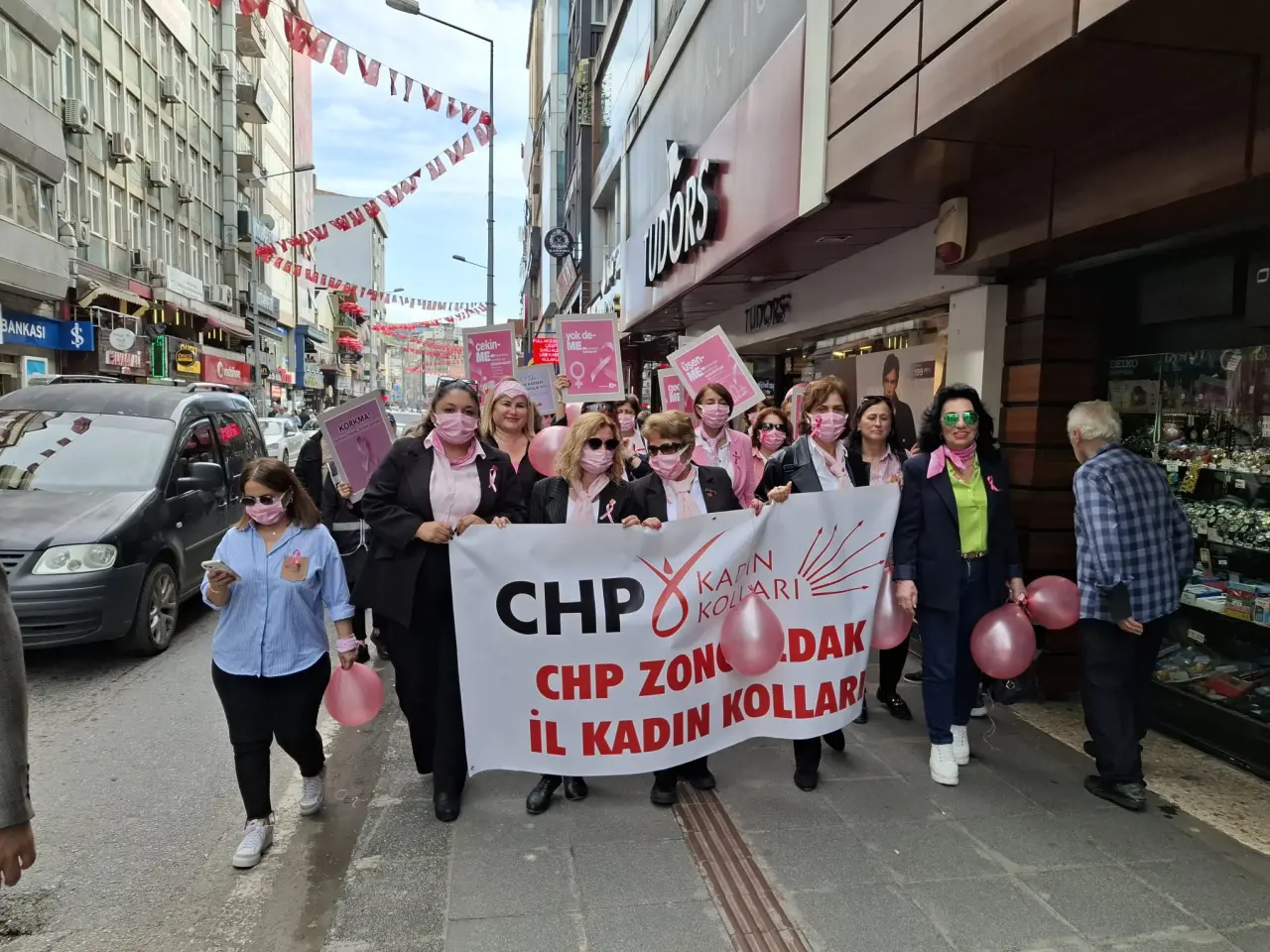 Etkinliğe CHP Zonguldak İl Başkanı Devrim Dural, Merkez İlçe Başkanı Nazmi Özden, il yönetim kurulu üyeleri, belediye meclis üyeleri, il genel meclisi üyeleri ve çok sayıda partili kadın katıldı. Katılımcılar, ellerinde “Erken Tanı Hayat Kurtarır”, “Kadın Sağlığı Toplumsal Sorumluluktur” yazılı pankartlar ve pembe balonlarla Madenci Anıtı’ndan Zonguldak sahiline kadar yürüyerek vatandaşlara farkındalık mesajı verdi.