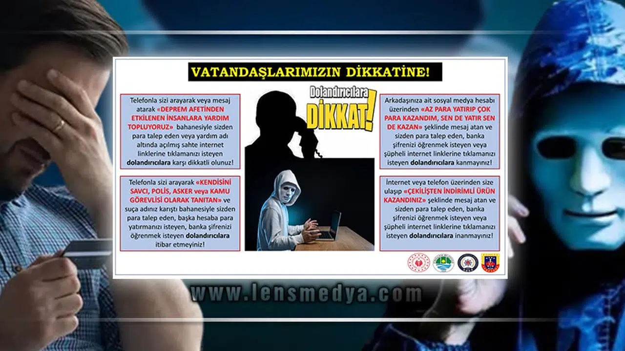 Yapılan uyarılarda, dolandırıcıların genellikle telefon araması, mesaj gönderme yöntemi ve internet ortamını kullandıklarına dikkat çekilerek; vatandaşlardan dikkatli olmaları istendi.