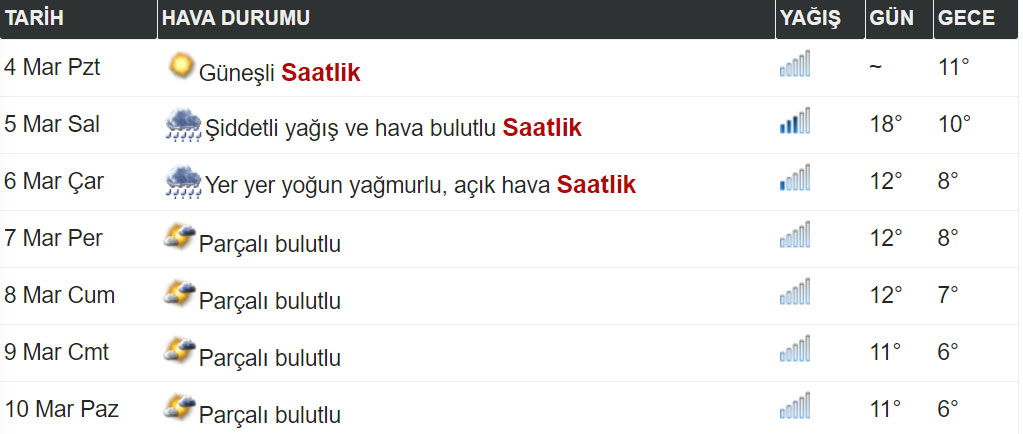 Zonguldak'ta bugün hava durumuyla ilgili yapılan tahminlere göre yağış ihtimali %5 seviyelerinde bulunuyor. Nem oranı %86, çiy noktası 7°C ve basınç değeri 1016 mb olarak öngörülmektedir. Yarın Zonguldak'ta sabah saatlerinde bulutlu bir hava bekleniyor ve sıcaklık 10°C olacak. Gün ortasında hava bulutlu devam edecek ve sıcaklık 17°C'ye yükselecek. Akşam saatlerinde ise hava yine bulutlu olacak ve sıcaklık 14°C olarak tahmin ediliyor. Gece ise yağmurlu bir hava bekleniyor ve sıcaklık 10°C olacak. Önümüzdeki hafta Zonguldak'ta en yüksek sıcaklık 18 derece olacak. En düşük sıcaklık ise 6°C olarak tahmin edilmektedir.