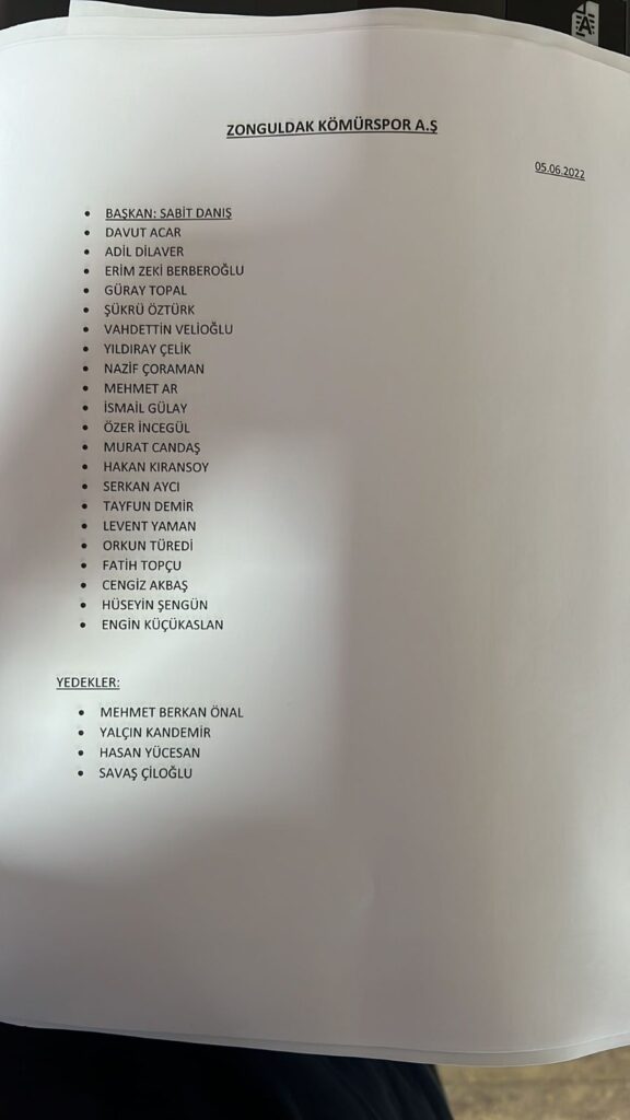 TFF 2.Lig ekiplerinden temsilcimiz Zonguldak Kömürspor'un olağanüstü genel kurulu öncesi tek liste ile seçime giden Zonguldak Kömürspor’un çiçeği burnunda başkanı Sabit Danış’ın yönetim listesi belli oldu.