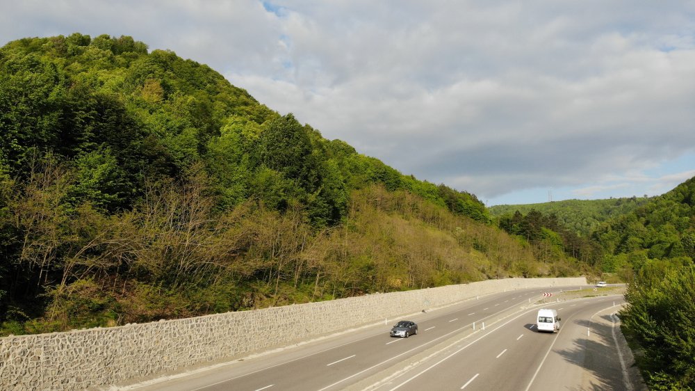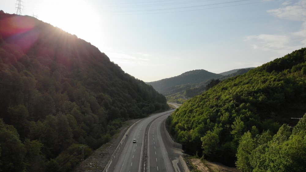 Zonguldak-Ankara karayolu üzerindeki ormanlar dron ile görüntülendi. Güzergahı kullanan sürücüler, yemyeşil manzarayı seyretmenin tadını çıkarttı.