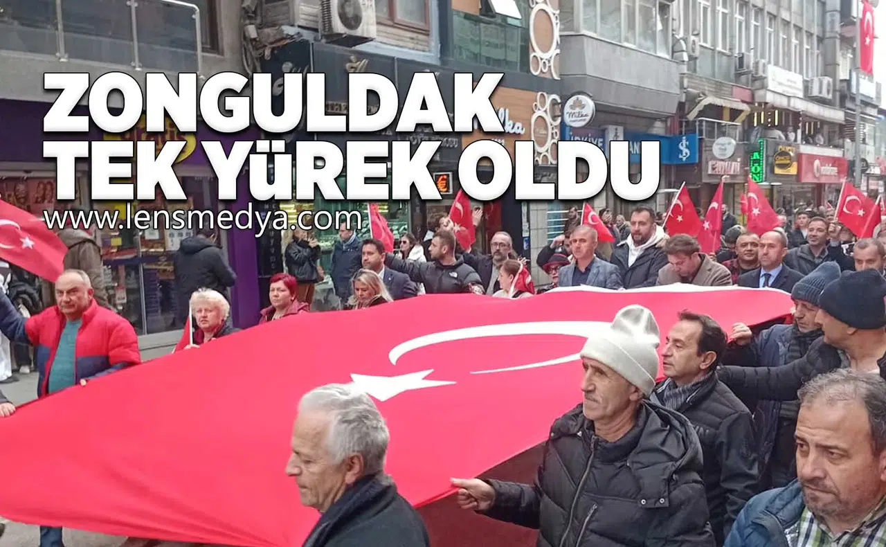 Ellerinde Türk bayrakları ve Gazi Mustafa Kemal Atatürk posterleri bulunan kalabalık, Madenci Anıtı’nda toplanarak Şehitler Anıtı’na kadar yürüdü. Yürüyüş boyunca sık sık “Bayrağa uzanan eller kırılsın”, “Mustafa Kemal’in askerleriyiz”, “Zonguldak burada bayrağının yanında” ve “Ne mutlu Türküm diyene” sloganları atıldı.