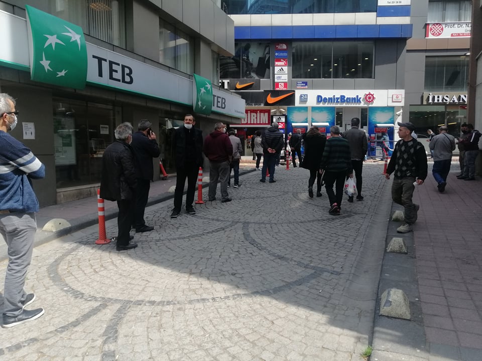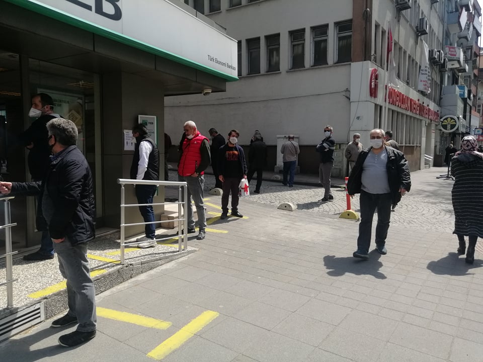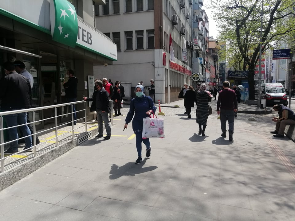 Zonguldak Gazipaşa Caddesi her zamanki gibi yine kalabalık bir şekilde görüntülenirken banka şubeleri şubesi önünde yine uzun kuyruklar oluştu.