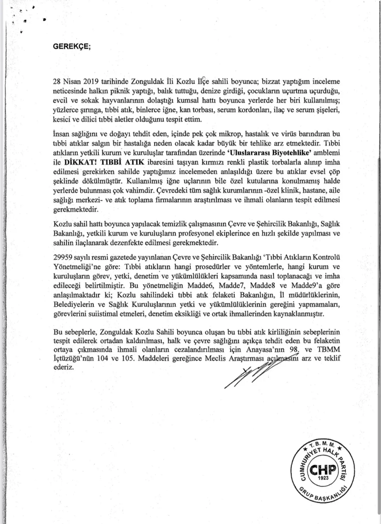 Konunun halk sağlığı boyutuna ilişkin sorularımız Sağlık Bakanlığı tarafından yanıtsız bırakılıyor. Her deniz dalgasıyla evsel ve tıbbi atıklarla dolu çöp yığınları Zonguldak’ın sahillerine yayılırken Sağlık Bakanlığı sessiz kalıyor. Son soru önergemize aylar geçmesine rağmen tek bir yanıt dahi verilmedi. Vatandaş sağlığından oluyor, Bakanlık ise üç maymunu oynuyor.