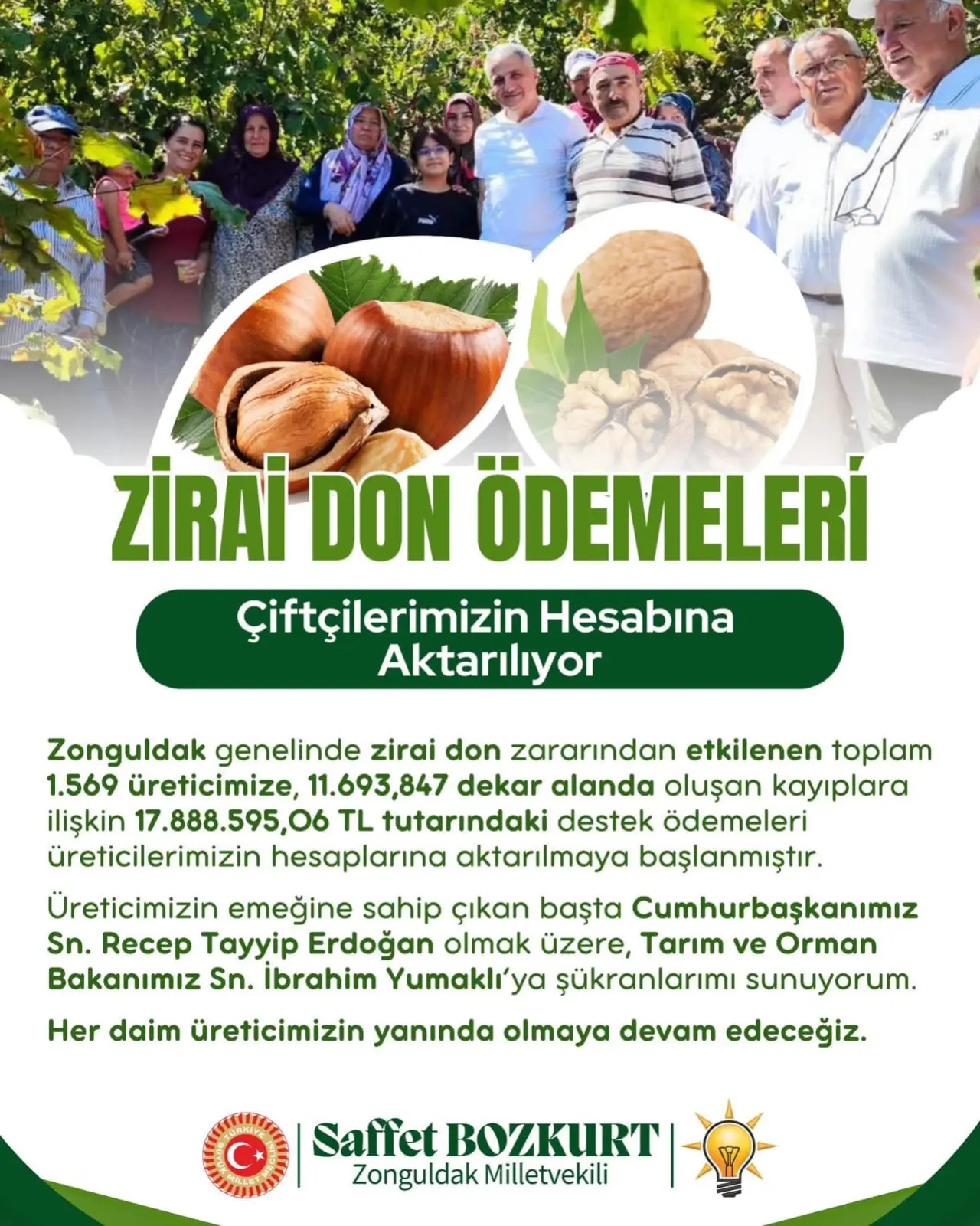Bu destekle birlikte Zonguldak’taki üreticiler, yaşanan zirai don zararı sonrası önemli bir nefes almış olacak.