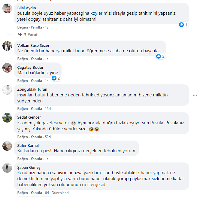 Haber Yayınlandıktan hemen sonra Pusula Gazetesi’ne tepkiler çığ gibi yağarken, yapılan haberin altına yorumlar yağdı. Basın İlan Kurumu’nun bu haberler karşısında ne iş yaptığını merak eden vatandaşlar, “Eskiden “Şok” ve “Bulvar” gazeteleri vardı. Artık bunun yerini yakında Pusula alacak” dedi.